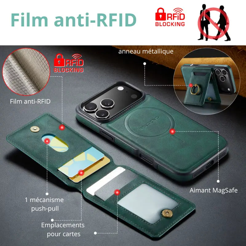 Avec l’étui Kazarius, protégez votre iPhone avec style. En cuir premium, son porte carte offre une protection RFID pour sécuriser vos données personnelles.